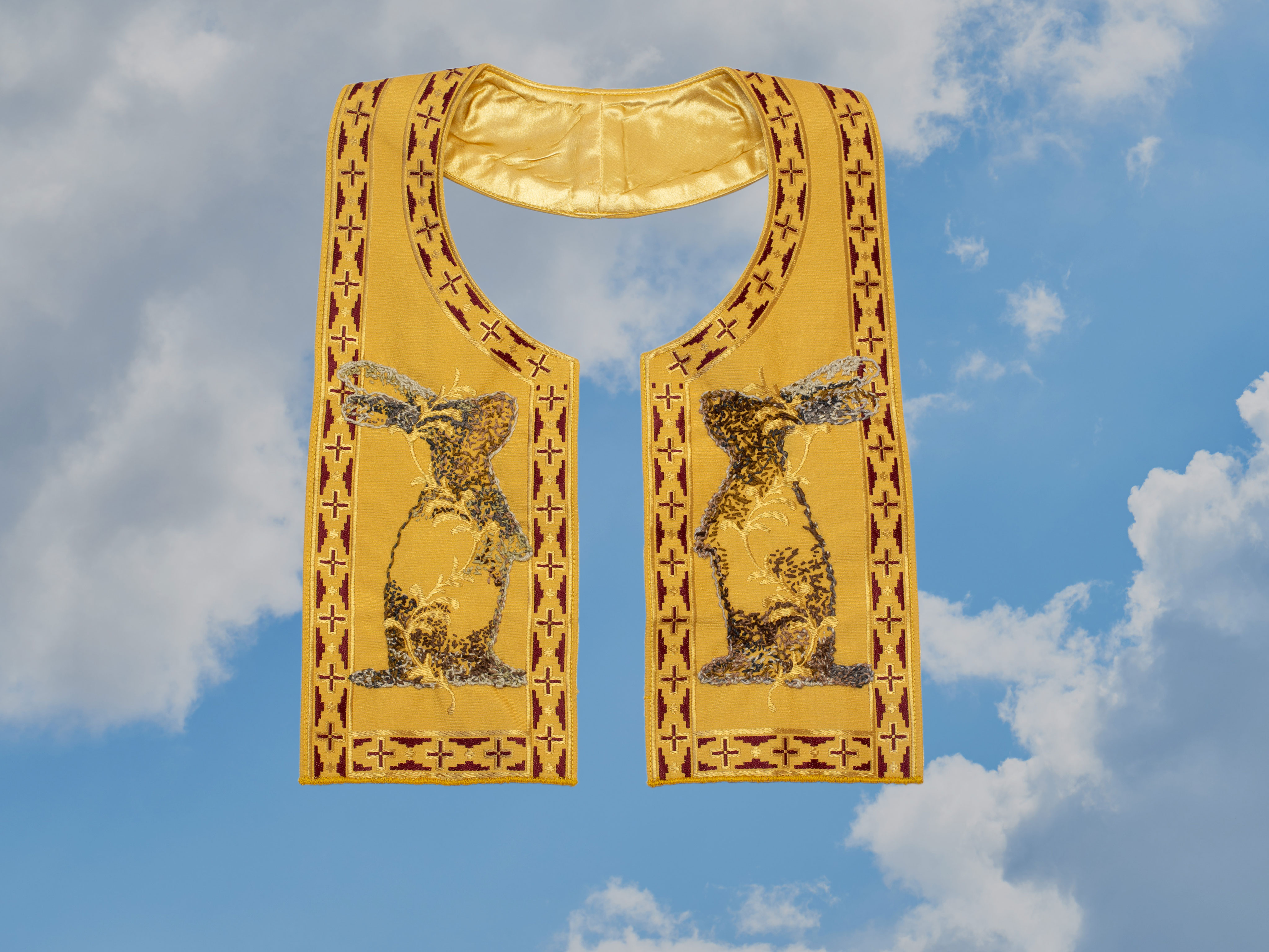 In Greek, the proverb «λαγοί με πετραχήλια» (hares with petrachilia*) describes extravagant promises and persuasive language that deceives. It alerts about cunning offers too grand and ornate to be real. “Hares dressed in vestments” declare miracles, cultivate delusions, and dissolve like mist into thin air.